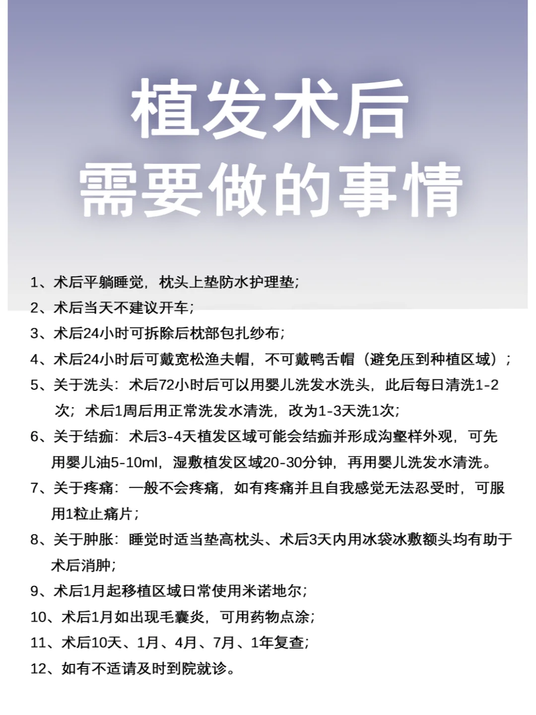 外观,可先用婴儿油5-10ml,湿敷植发区域20-30分钟,再用婴儿洗发水清洗;7️⃣ 关于疼痛:一般不会疼痛,如有疼痛并且自我感觉无法忍受时,可服用1粒止痛片;